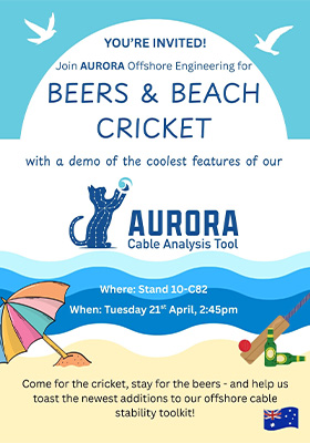 Aurora Offshore Engineering will be hosting a number of Tech Talks, technical chats focused on cable stability over diverse seabeds from a fresh, expert, and academically researched perspective, demonstrating our unique ability to find solutions to all of your cable and CPS stability needs.